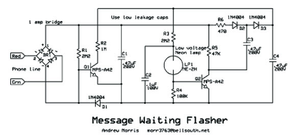 check your voice-mail. The flashing neon light drives a voltage doubler (Q2) which