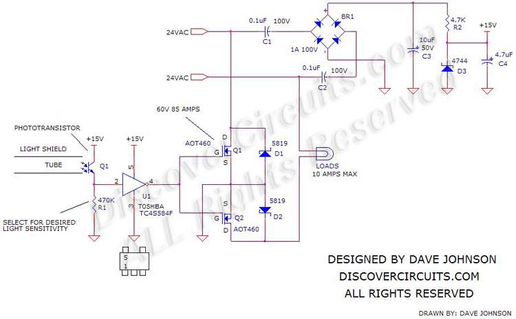 rectifier circuit to convert AC into DC. A 12v zener diode limits the