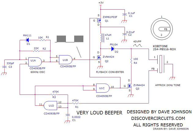 about 40 volts peak to peak. The result is a circuit that generates an attention