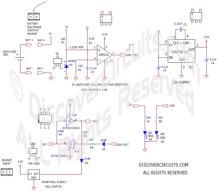 Instruments, was used to latch the normal and low battery states and a Honeywell Hall