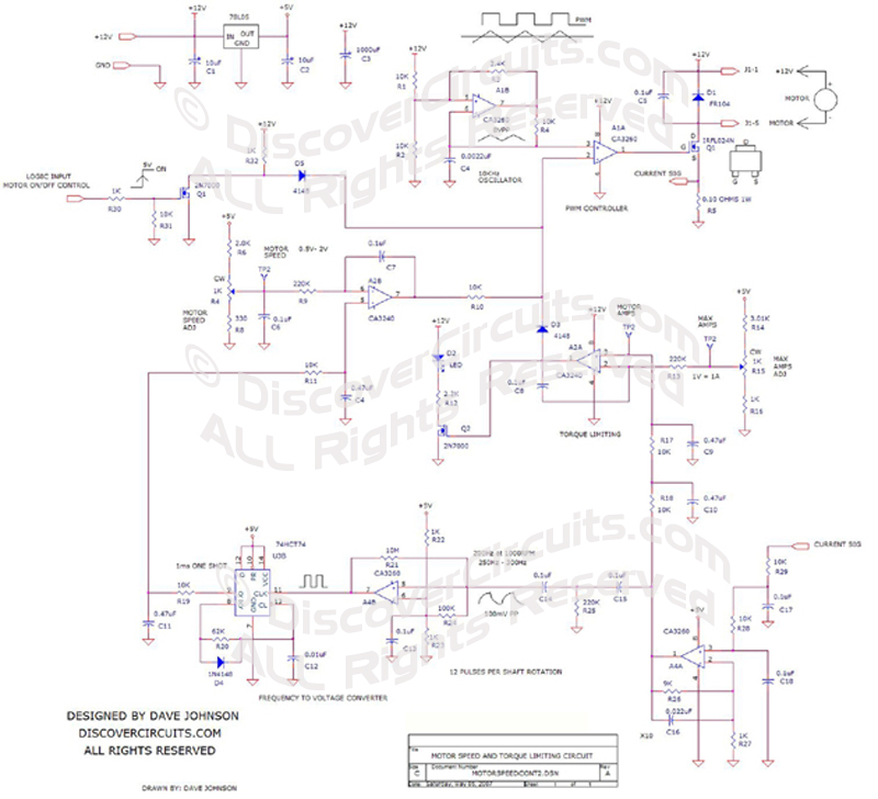 then is connected to the PWM circuit, to maintain a constant motor speed. |