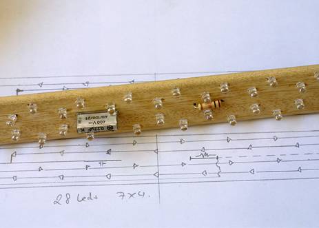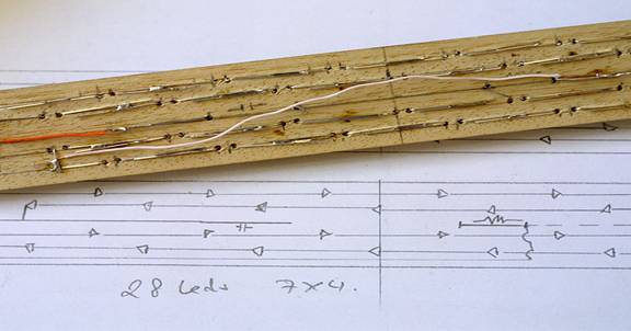 LEDs. He mounted the LEDs onto a wood stick. When powered up from a 240vac 50Hz