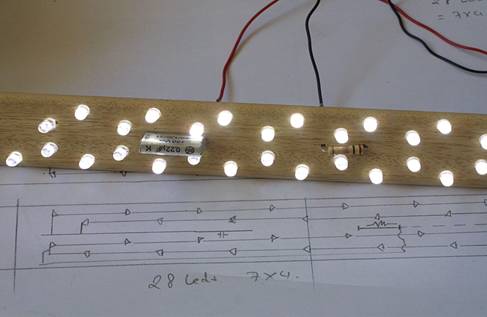 sent me his version of this circuit, using two strings of 14, for a total of 28 white