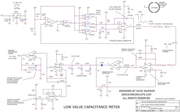 measures the unknown capacitance by applying a clean 20KHz 5v peak to peak triangle