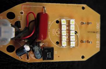 the day. Inside were three white LEDs, wired in series. When I first plugged