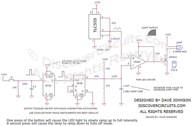 An n-channel FET switches power to the lamp with up to 3.5 Amps of current.