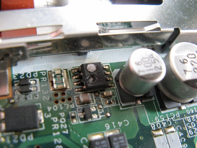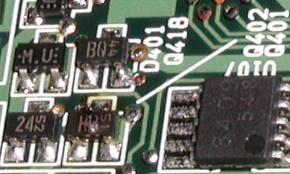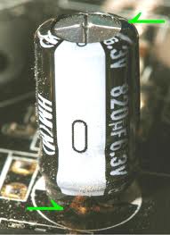 capacitors exhibit a failure by spitting out liquid electrolyte onto the board. A