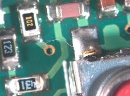 microscopic tin hairs which can grow between pins on a circuit board. They are often