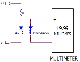 I then connect the photodiode to my multimeter, set for the DC current mode and