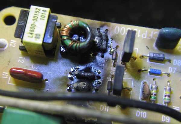 bug zapping grid. The failure occurred somewhere in the HV section.