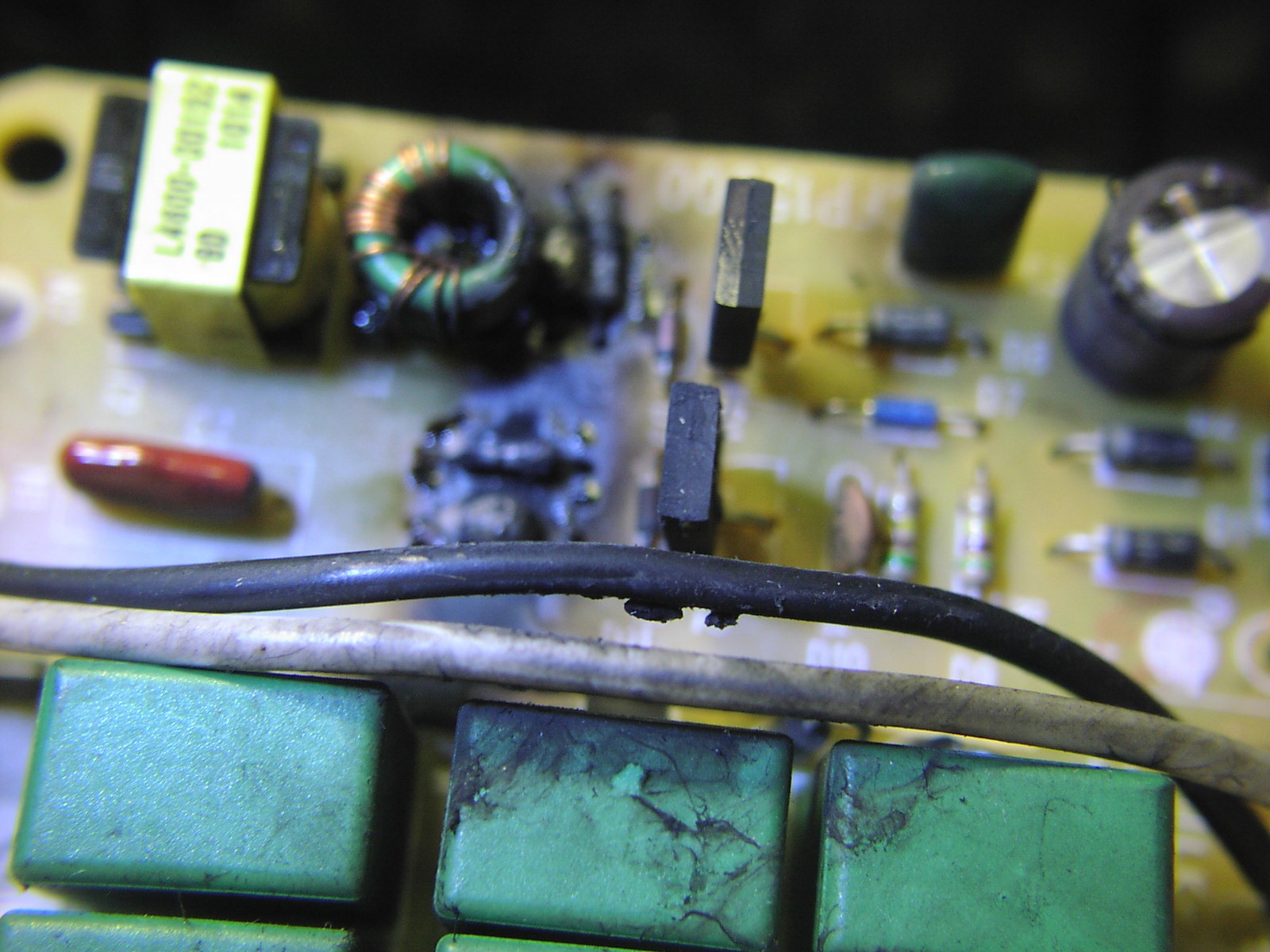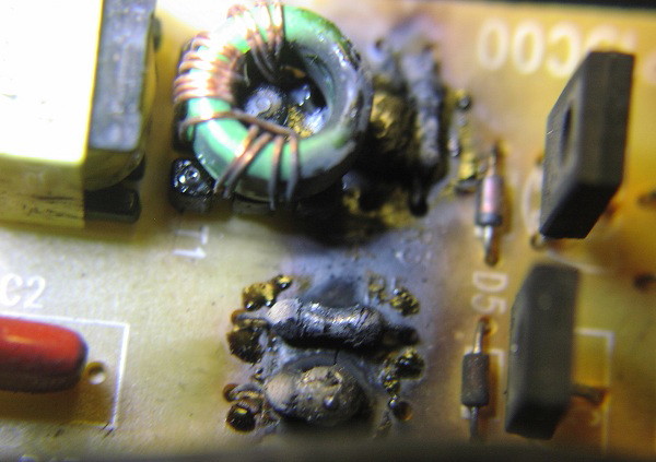 Nearby wires and capacitors were also scorched. I did see a fuse, at
