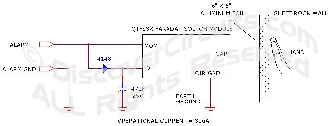 capacitance switch to do the job. The QTFS3X from Faraday switches looked like a