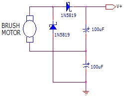 DC motor. The positive and negative voltage from the brush motor, acting