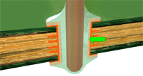 the solder forms an eyelet around the component lead. This prevents the lead from