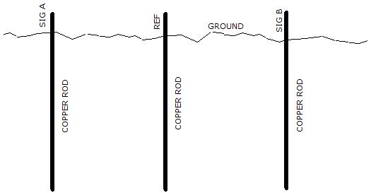 ground. As illustrated below. Three copper rods would be driven into the