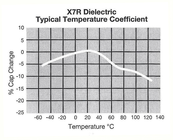 a similar part, using a X7R dielectric would only change by about 7% when hot. |