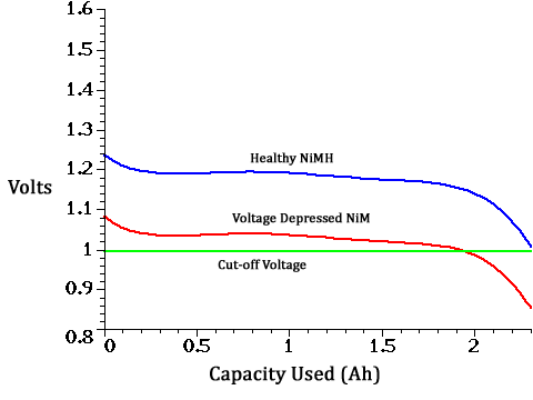 cut-off point. In an AA battery, with a 2500 milliamp hour capacity, that