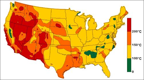 a geothermal energy resource map for the lower 48 states of the U.S. Note that
