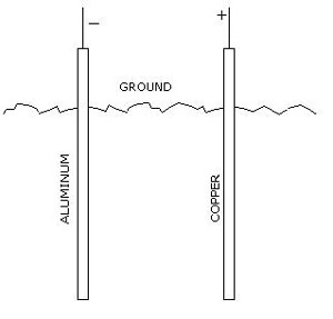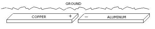 plates, one of copper and one of aluminum, buried in the ground. would certainly have